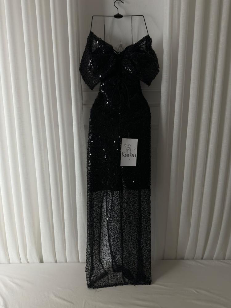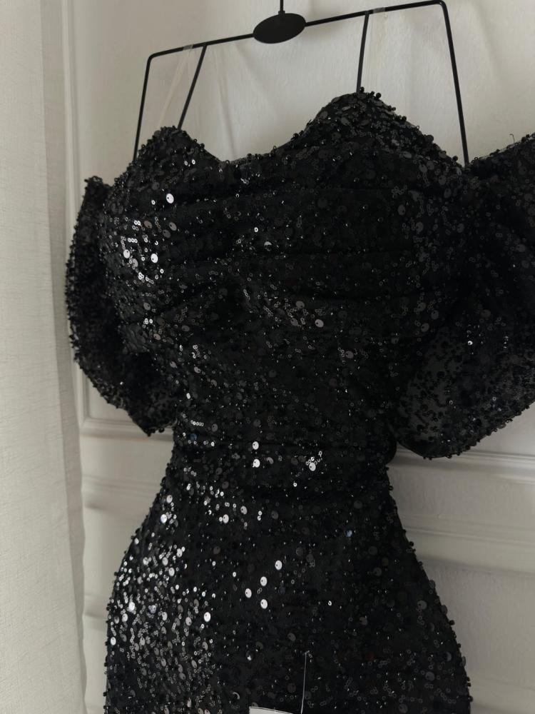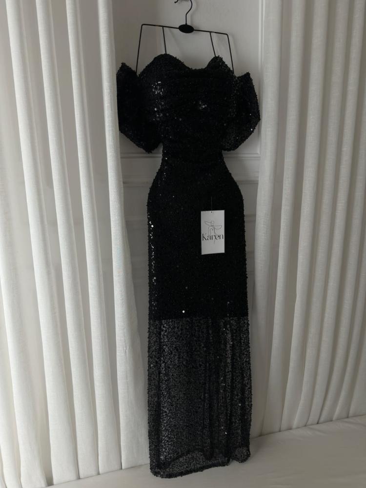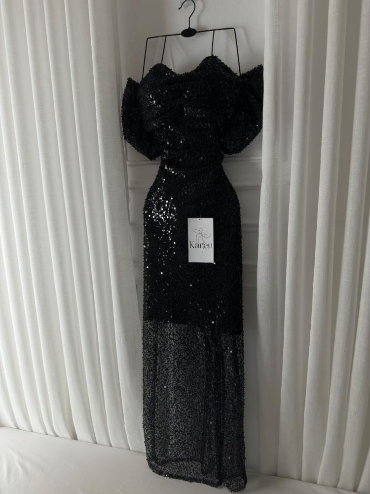 فستان اسود ملكي بتصميم أنثوي ساحر، ترتر سهره . ليمنحك جاذبيه لامثيل لها ✨