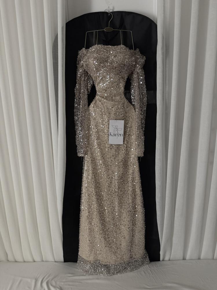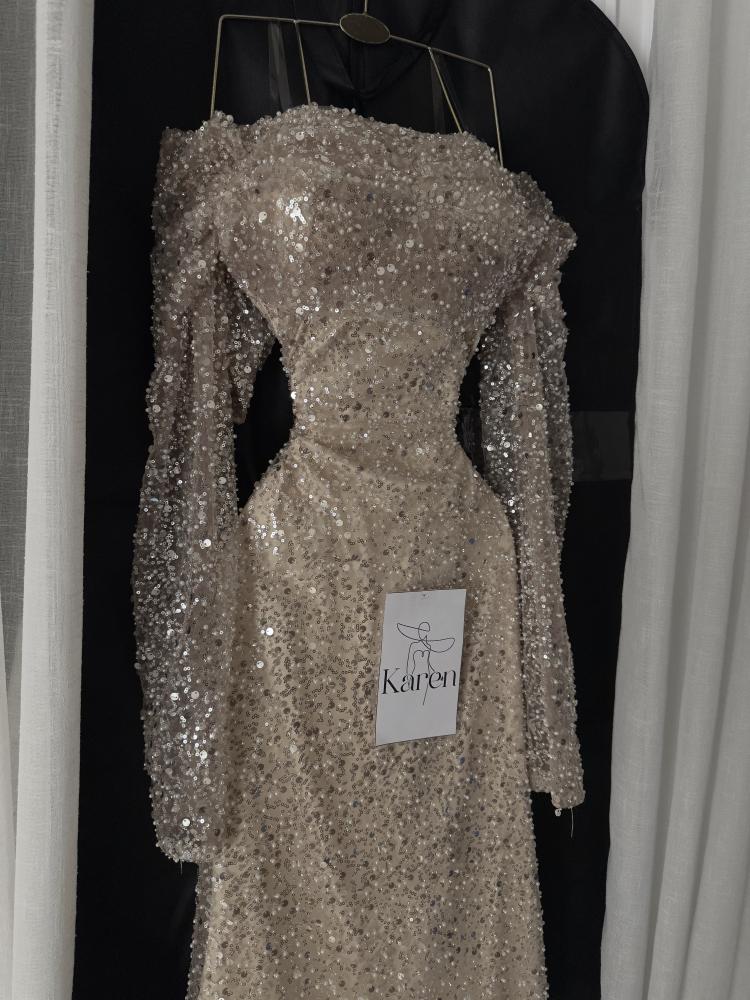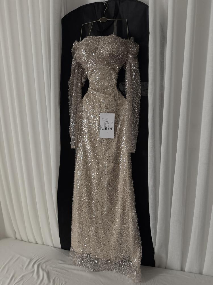 فستان ترتر سهره فخم، مطرز بتفاصيل فنيه تلمع مع كل حركة✨️