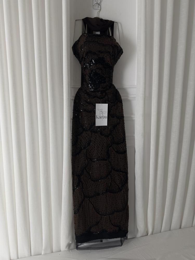 فستان سهره فخم، مطرز بتفاصيل فنيه تلمع مع كل حركة✨️
