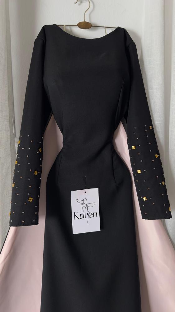 فستان سهره فاخر مصنوع من الباربي  مصمم بأسلوب انيق يدمج بين الكلاسيكية والعصريه يتميز بتطريزات أضافه إلى ذيل ميكادو معي اكمام مطرزه  فاخره تضفي لمسه ساحره من الفخامه مع قصه مريحه مثالي للمناسبات الخاصه والسهرات اجعليه خيارك الاول للتميز!
