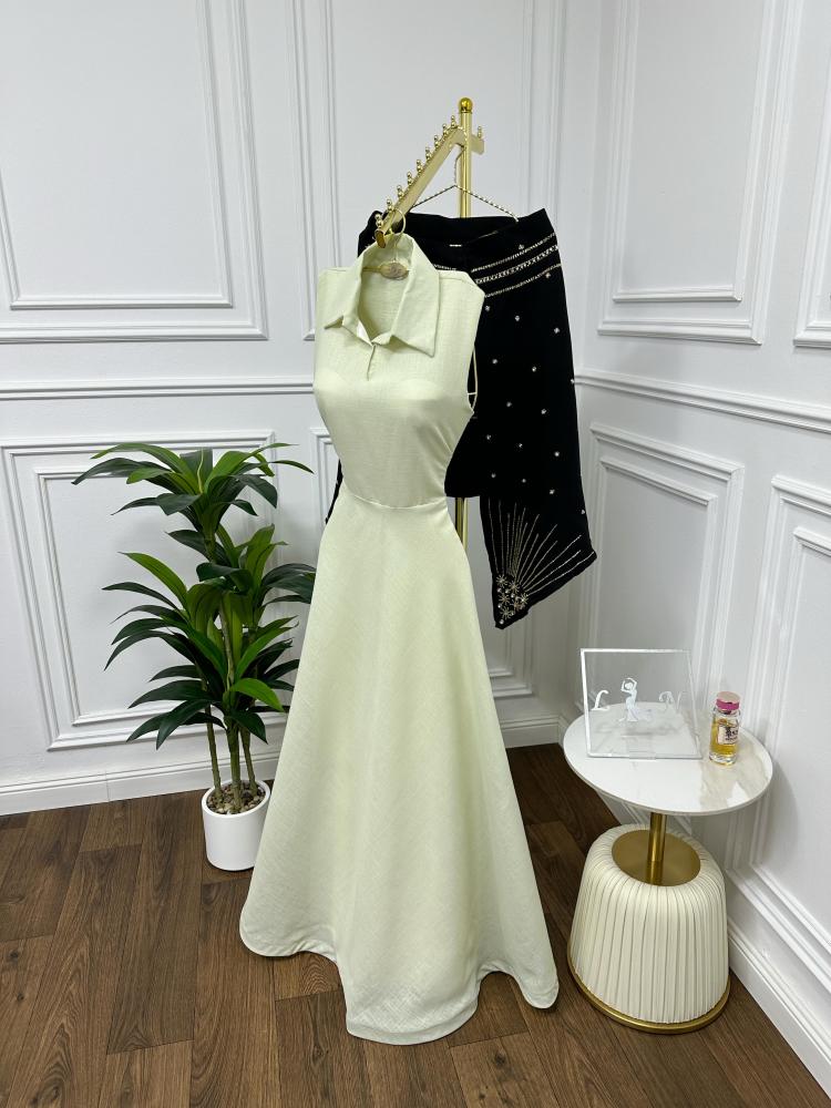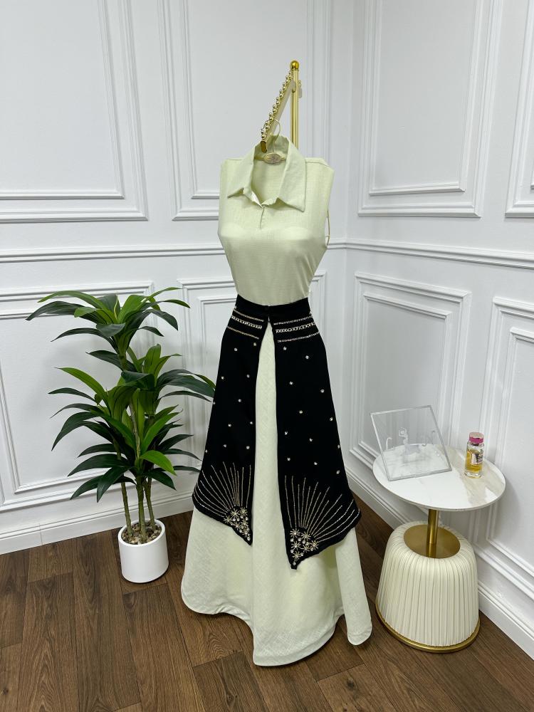 فستان مميز يجمع بين النن الهندي على تدخليه من الباربي بلون الاسود على تطريز راقي مستوحى من الطابع الفيكتوري مع لمسة عصرية. مزود بتطريز من ألنص جذابة، لإطلالة فريدة وأنيقة.