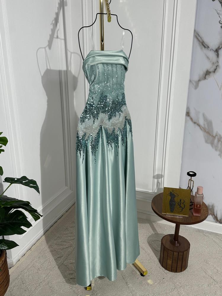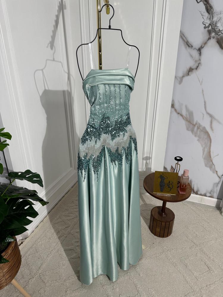 فستان سهرة مميز مصنوع من أقمشة فاخرة وانسيابية تمنحك إحساسًا بالراحة والأناقة في آنٍ واحد. تصميمه المميز بتطريز لامع ولمسات راقية يعكس أنوثتك بأسلوب جذاب يجعل إطلالتك تخطف الأنظار في كل مناسبة.