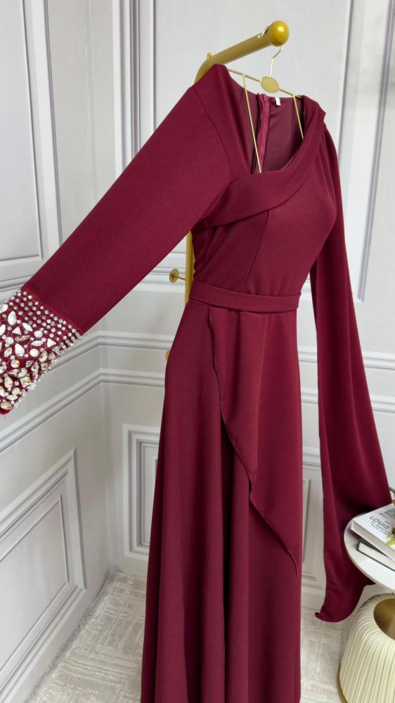 تألقي بإطلالة ساحرة مع هذا الفستان الأنيق ذو القصة الفريدة، حيث يتميز بكم طويل مزين بتطريزات مميزة، بينما الكم الآخر طويل ومنسدل. تنساب التنورة برشاقة، مما يمنحكِ حرية الحركة ويضفي طابعًا مميزًا على إطلالتك، يجعله خيارًا مثاليًا لكل المناسبات.